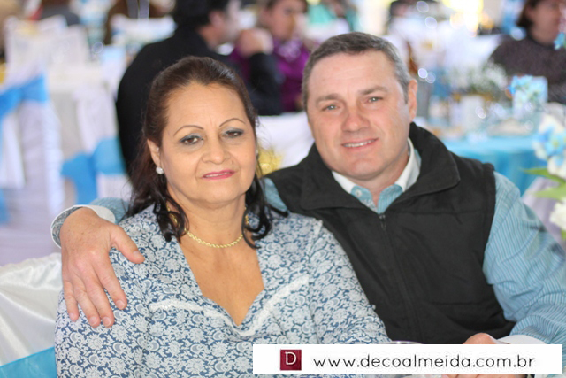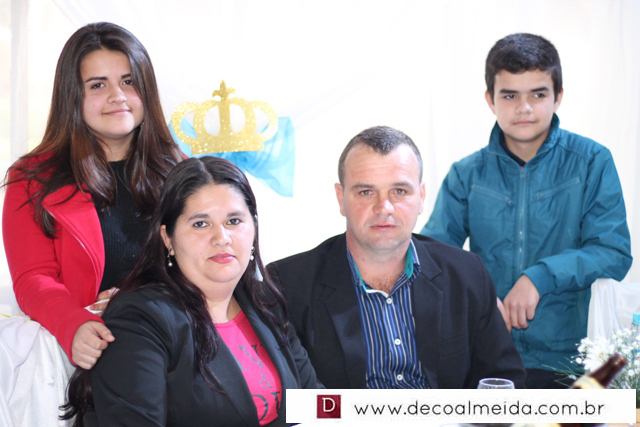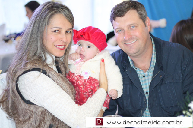 Momento de grande alegria em simpática recepção comemorada por seus pais, Patrícia e Alexandre Piazza.