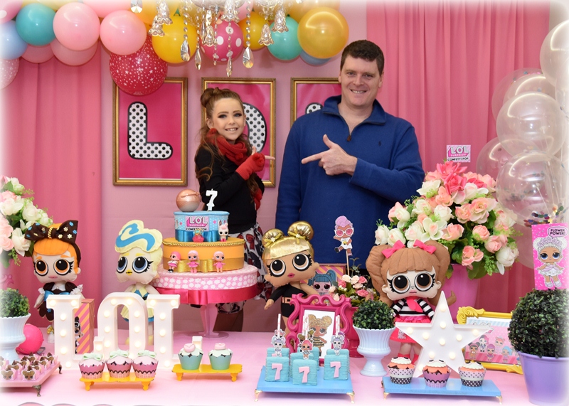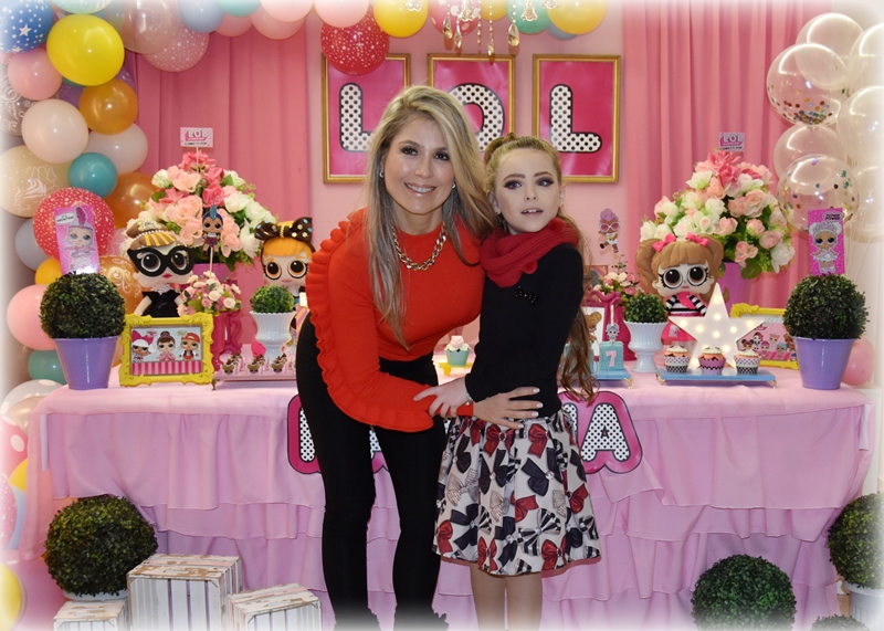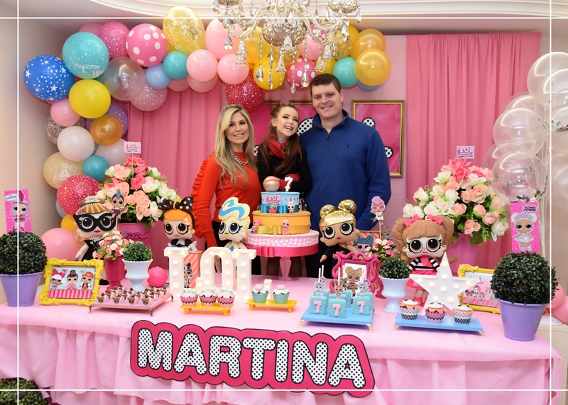 Os pais Juliane e Márcio Bonfá estavam felizes com a alegria da filha Martina na sua festa de aniversário de 7 anos.