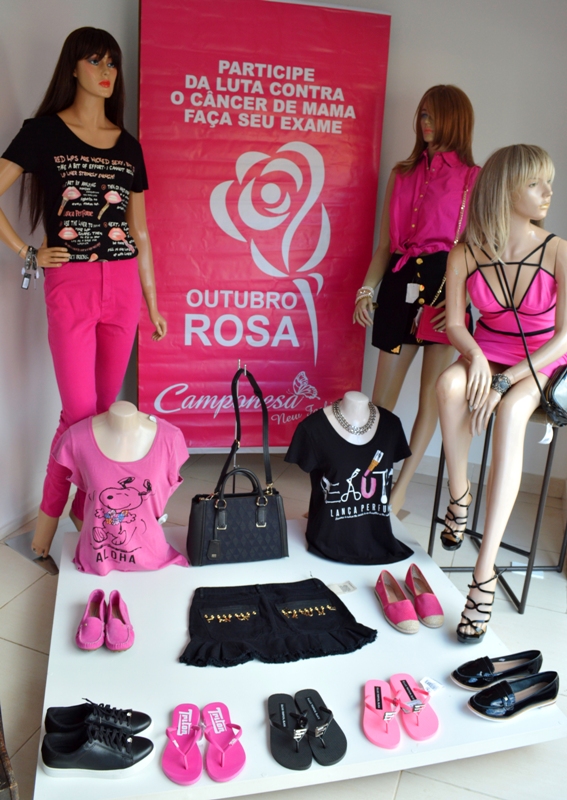 Suzy Torres mensalmente vai às principais feiras do país, garimpando o que há de mais atual no vestir para eles e elas, com designer e cores condizentes com a estação. Neste mês, a Camponesa New fashion, mostra em sua vitrine, modelos em tons de rosa em apoio ao Outubro Rosa.
