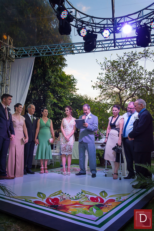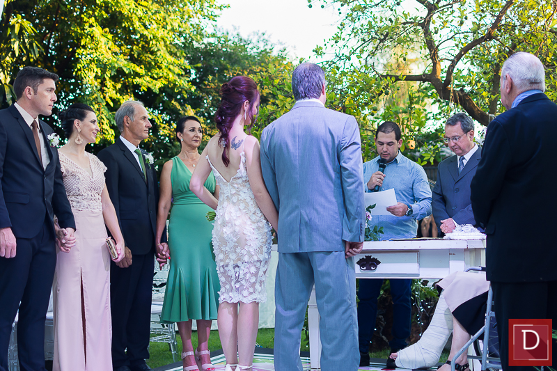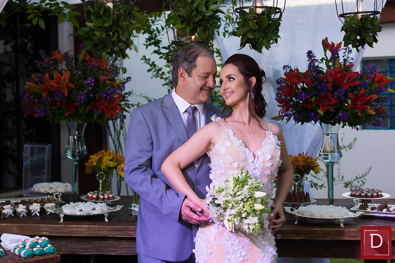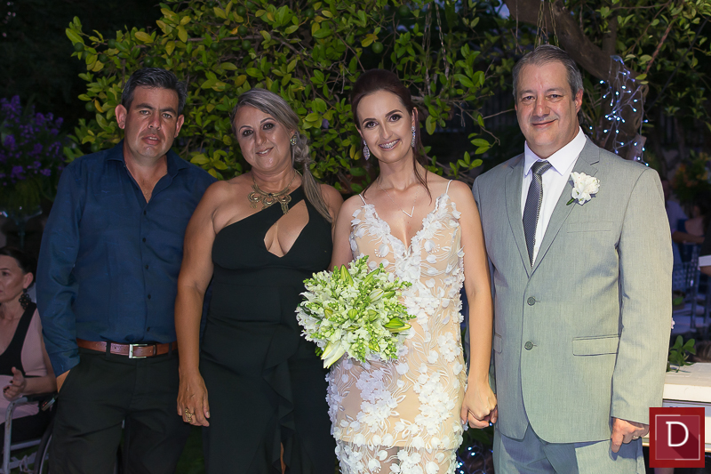 A prestigiada troca de alianças sob olhares de alinhados convidados ocorreu no jardim do CNA, que foi devidamente ornamentados por José Nelson Souza e complementados pelo impecável cerimonial de Zilma Issler.