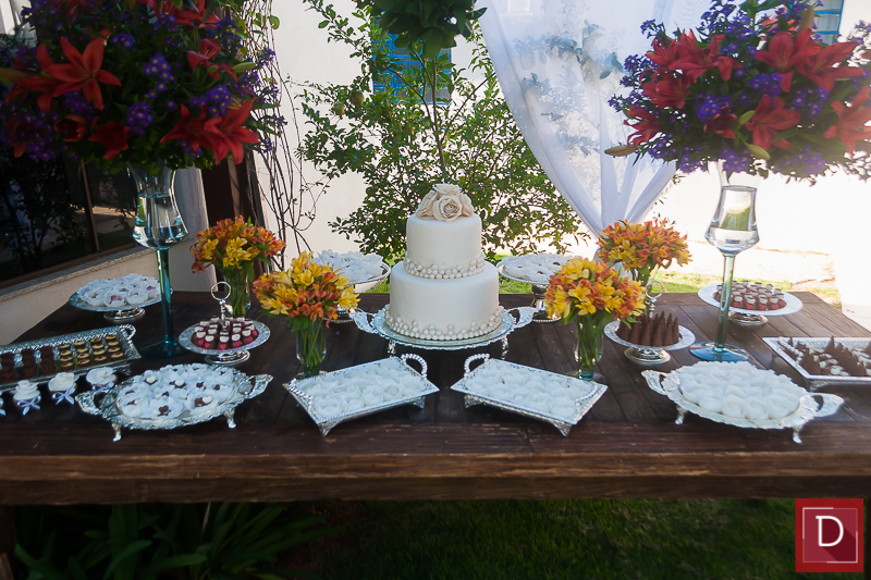 O enlace matrimonial de Juliana e Volnei reuniu amigos e familiares para confraternizar e também degustar uma boa mesa assinada pelo buffet de Mairiane Alawy apresentando um refinando cardápio.