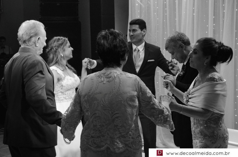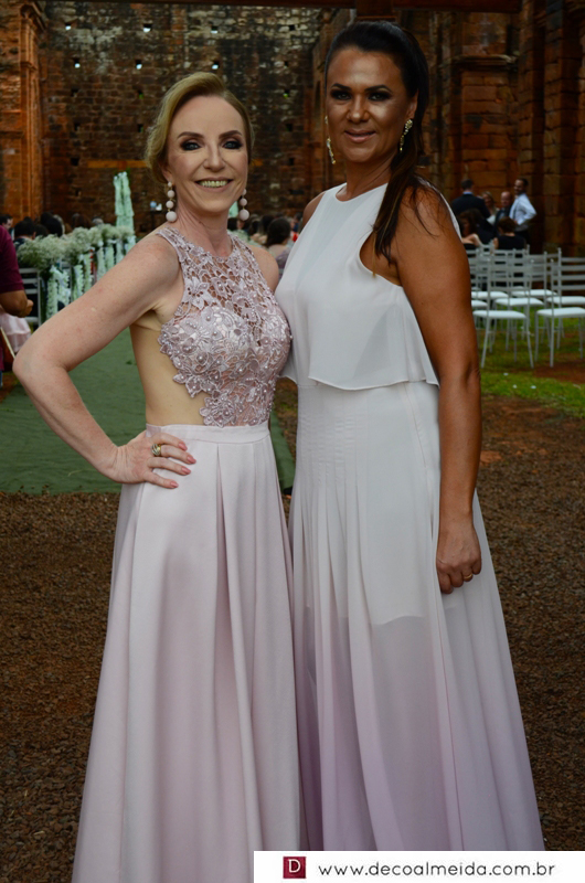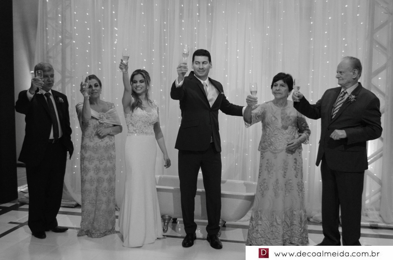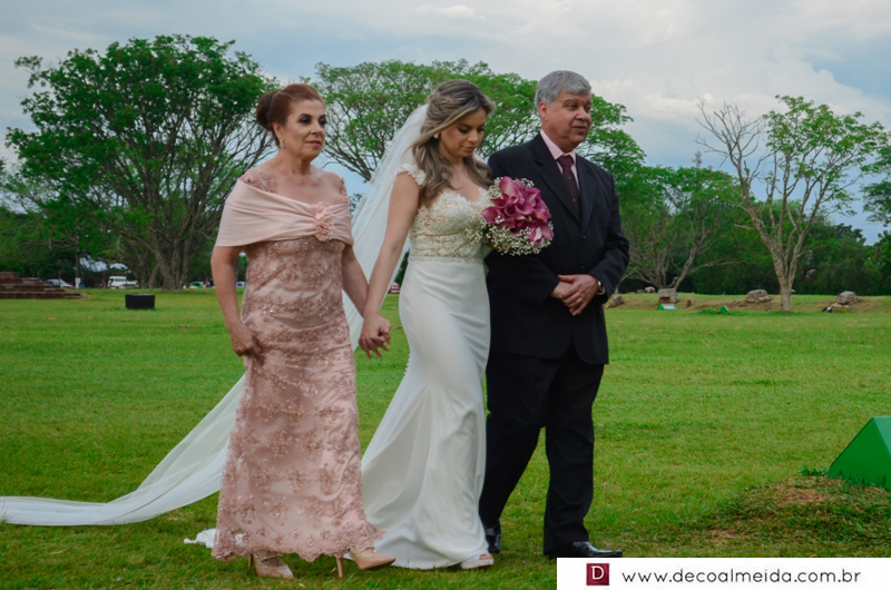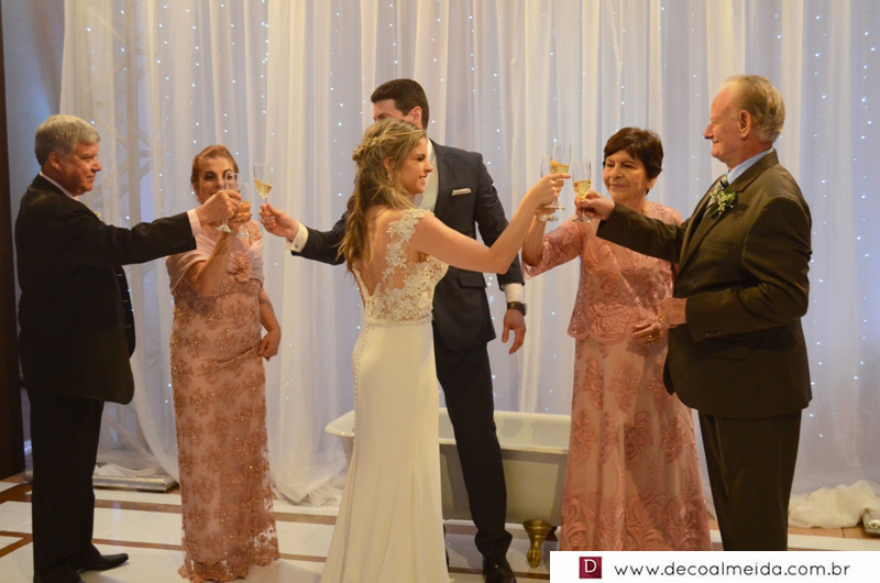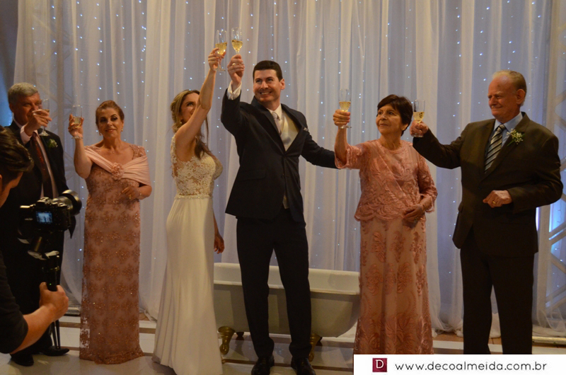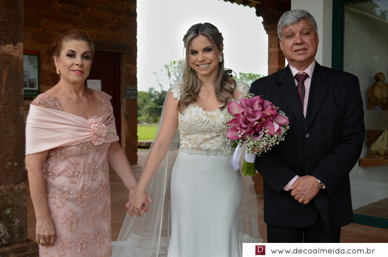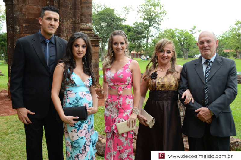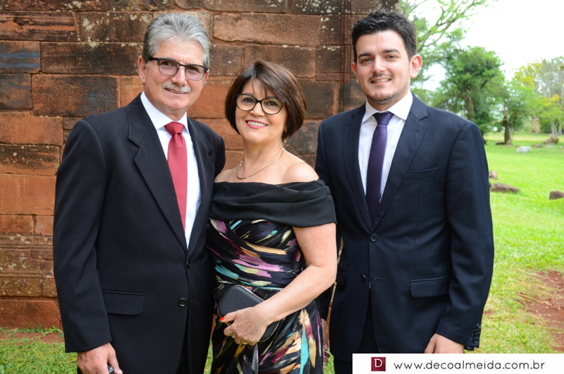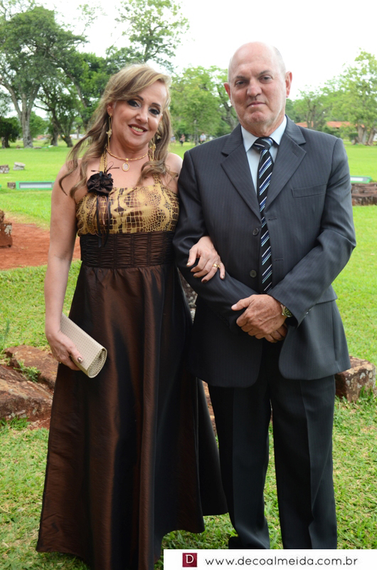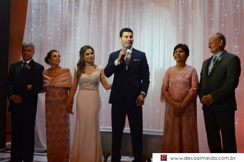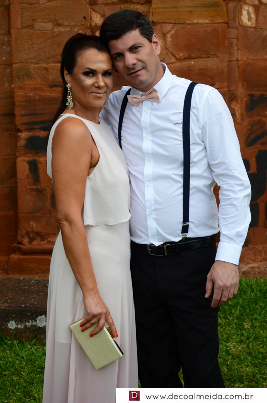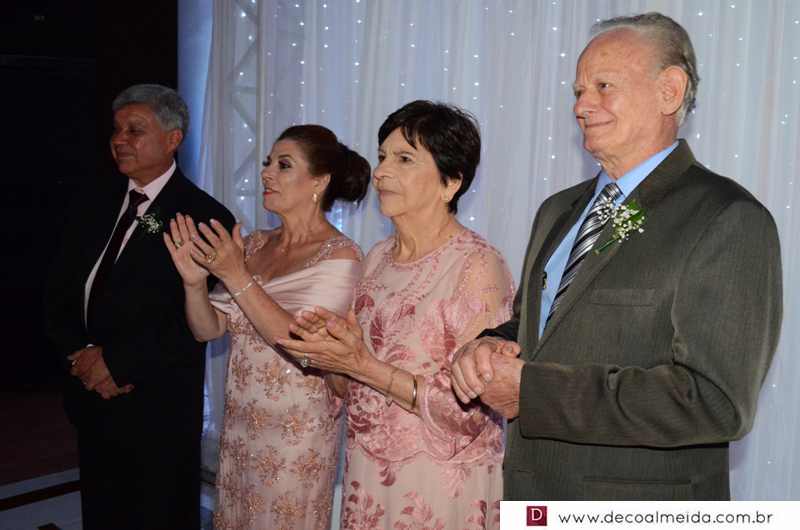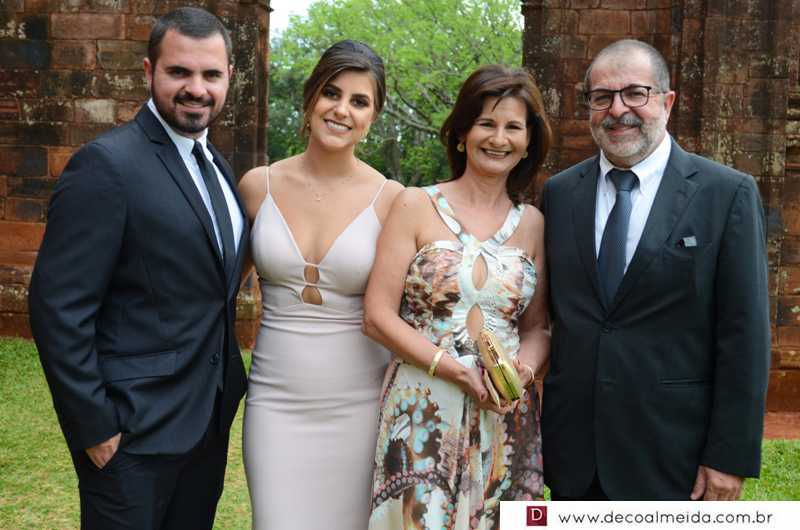 Alinhadíssimos na cerimônia proferida pelo médico e tio da noiva, Antônio Jesus de Andrade os pais, José Adão Damaceno de Andrade e Eliane Cristina, em modelo longo bordado na tonalidade nude, que a deixou muito chique, Ramiro Parcianello e Maria Julieta.