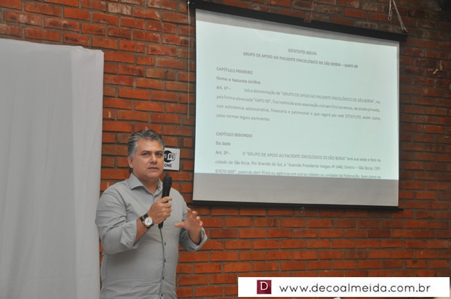Na data do dia 19.10.2016 na associação de funcionários do HIG, ocorreu a leitura do estatuto e assinatura da ata e eleição dos conselhos: diretivo, consultivo e fiscal do GAPO-SB, Grupo de Apoio aos pacientes Oncológicos de São Borja. Fazem parte do conselho diretivo: Sören Franz Marian Chicata Sutmöller (presidente), Jefferson Soares Guimarães (vice-presidente), Andrei Falcão Poerscke (secretário) e Maiara Paz (tesoureira). Confira os cliques da Popo…