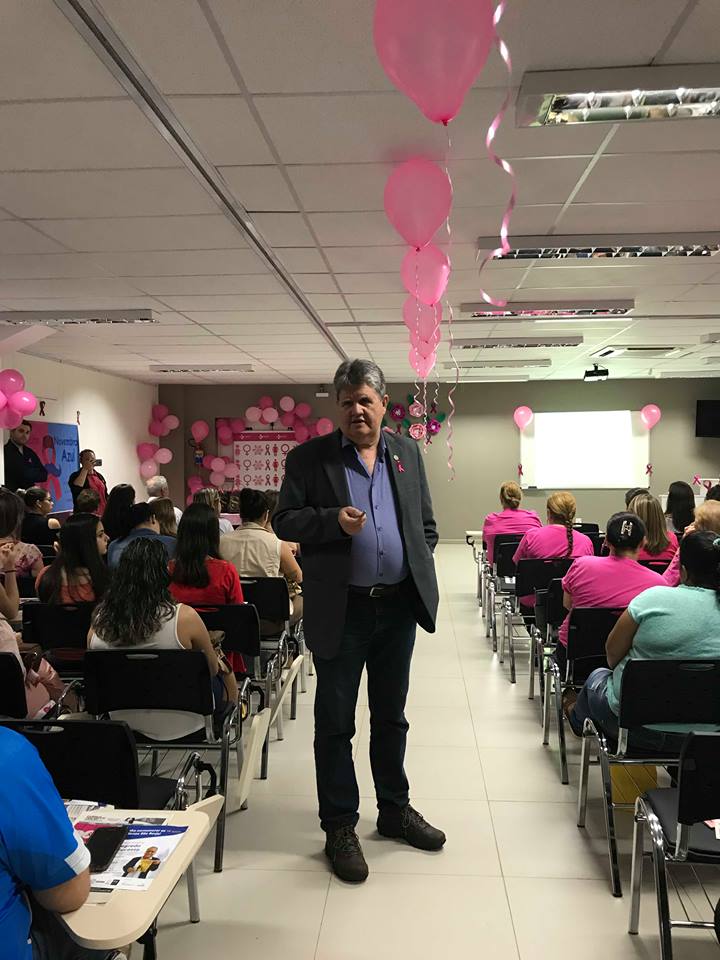 O Hospital Ivan Goulart realizou ações de conscientização a campanha Outubro Rosa, a fim de conscientizar a comunidade sobre a importância da prevenção e tratamento do câncer de mama. As ações foram realizadas em parceria com o Grupo de Apoio ao Paciente Oncológico – GAPO – , Liga Feminina de Combate ao Câncer e SENAC- São Borja. Entre as ações que foram realizadas no HIG estão entrega de folders informativos na ONCO e CDI, decoração alusiva à data que foi realizada pelos alunos do SENAC, embalagens cor de rosa para entregas de exames de mamografia no CDI e ‘Roda de Conversa’ alusiva ao Outubro Rosa que contou com explanação da enfermeira Leda Perobelli e dos médicos do HIG, Dr. Acildo Savian, ginecologista e Dr. Tiago Camícia, oncologista.