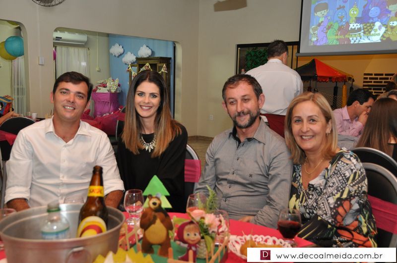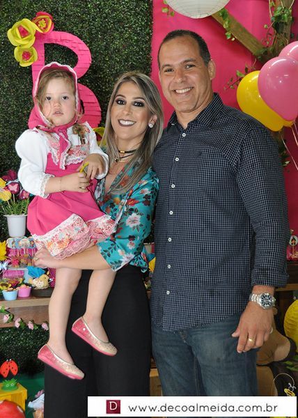 Com a linda decoração e personalização da Petit Poà, Barbará recebeu os convidados junto de seus pais Jorge Francisco de Souza Junior e Valéria Assis Brasil.