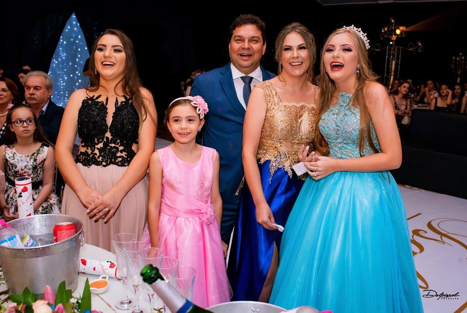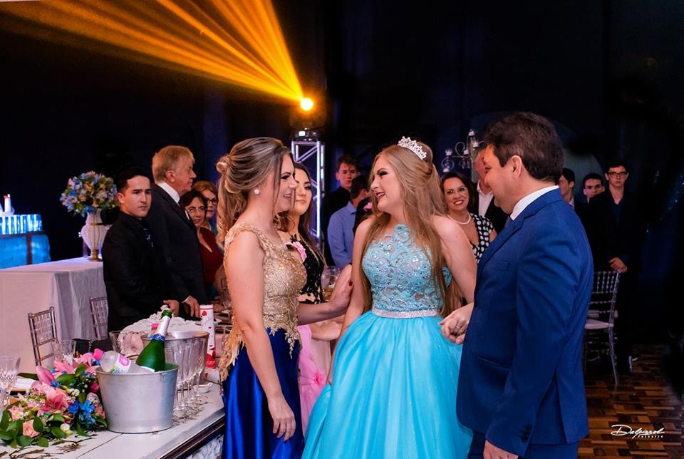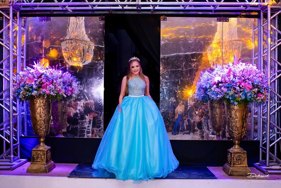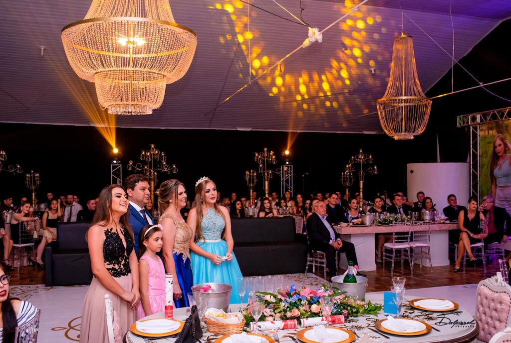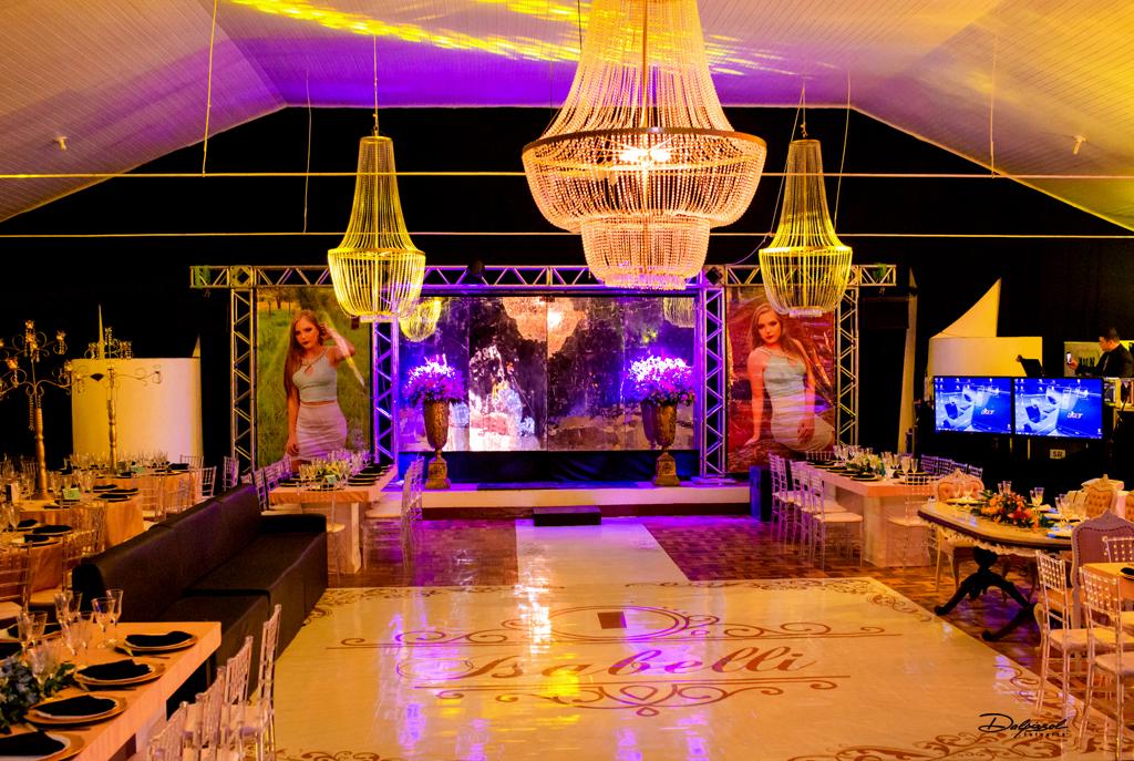 Foi no Clube 7 de Setembro, na cidade de Santo Antonio das Missões que Isabelli comemorou a chegada de seus 15 anos. Com uma decoração onde o clássico e o moderno se harmonizam, Alencar Aguilar usou toalhas de jacquard em brocado rosa, lustres imperiais, candelabros gigantes e na mesa da família uma peça Luis XV com tampo em pintura banhado a ouro e cadeiras talhadas a mão, lembrando os palácios europeus, além de espelhos, inspirados no Palácio de Versalhes.