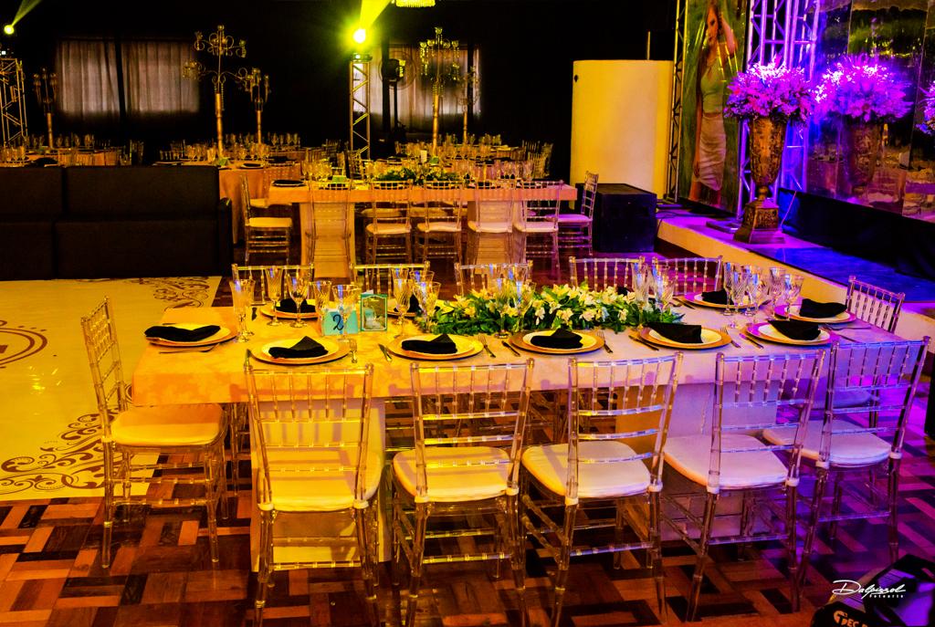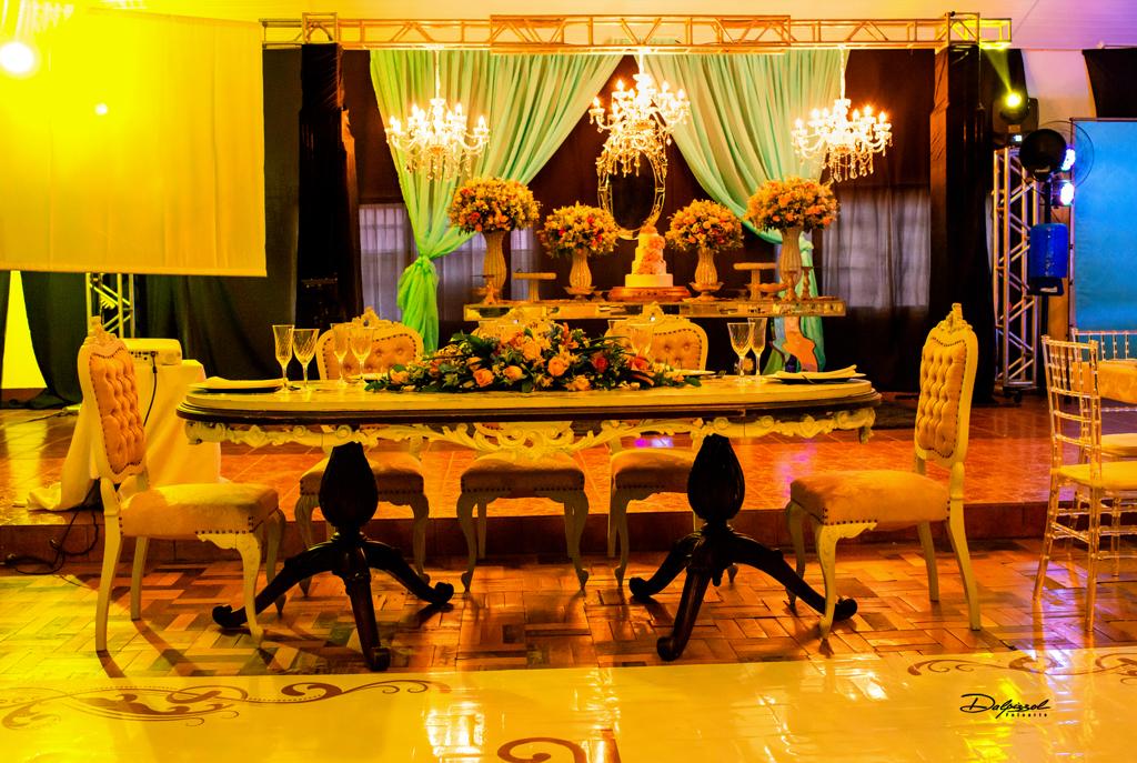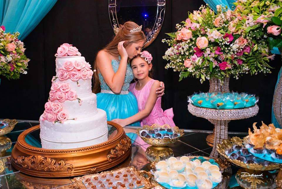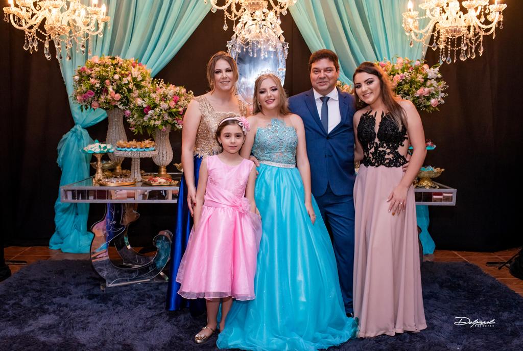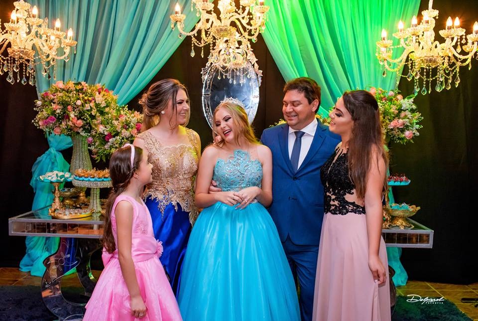 Foi no Clube 7 de Setembro, na cidade de Santo Antonio das Missões que Isabelli comemorou a chegada de seus 15 anos. Com uma decoração onde o clássico e o moderno se harmonizam, Alencar Aguilar usou toalhas de jacquard em brocado rosa, lustres imperiais, candelabros gigantes e na mesa da família uma peça Luis XV com tampo em pintura banhado a ouro e cadeiras talhadas a mão, lembrando os palácios europeus, além de espelhos, inspirados no Palácio de Versalhes.