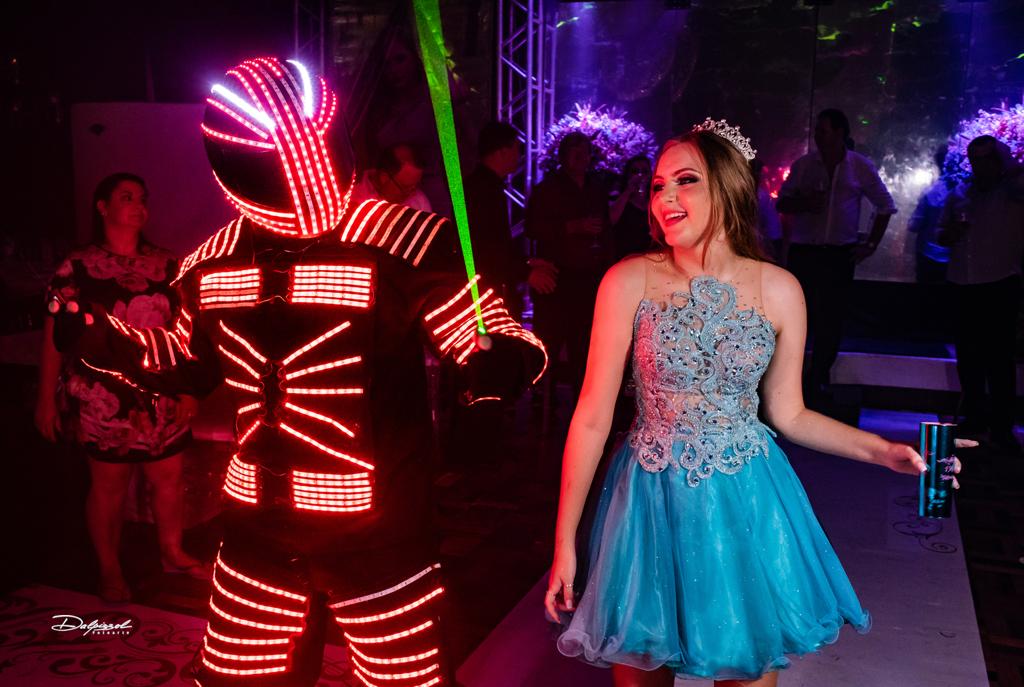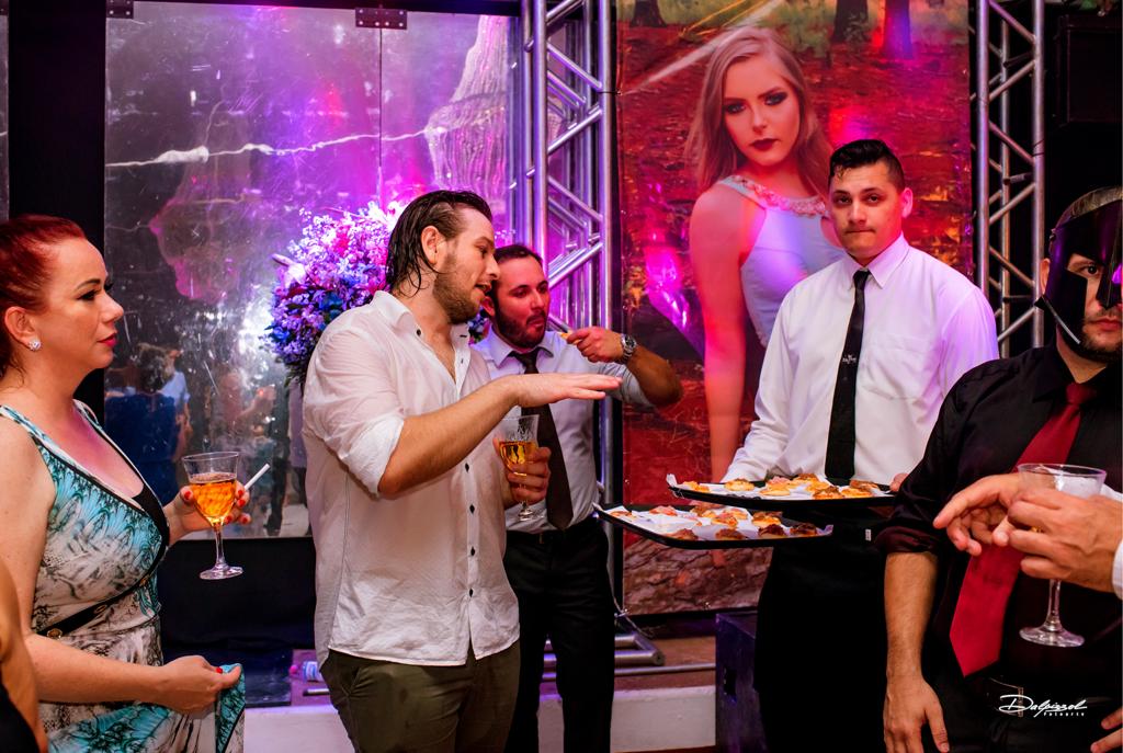 Uma carta super elabora de drinks com ilha de caipirinha, foram um show da Elite In Party. Para a recepção dos convidados foram usados personagens da Brodway, no maior alto astral, juntamente com pais Sibeli e Luiz Jocelmo Silveira da Rosa. O robô de led entrou num clima de alto astral para animar ainda mais a festa. Um buffet inspirado nos gostos da estrela da noite e a sobremesa servida à francesa fez toda a diferença. Confira alguns registros deste lindo evento.