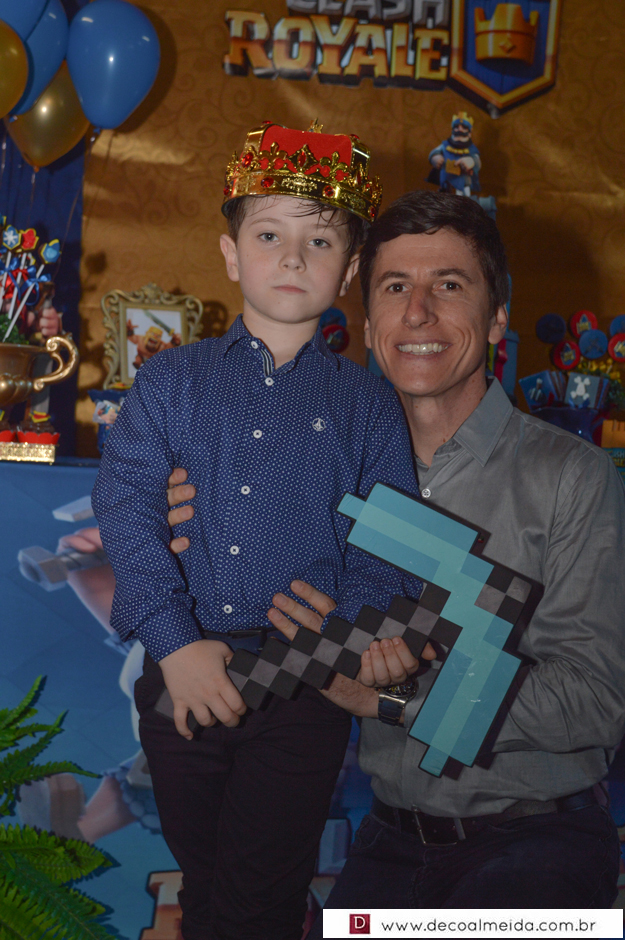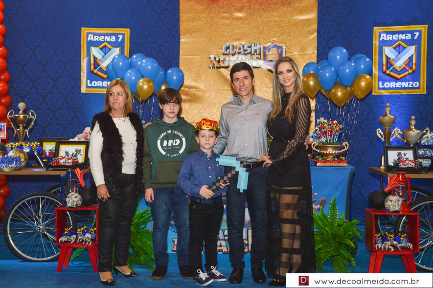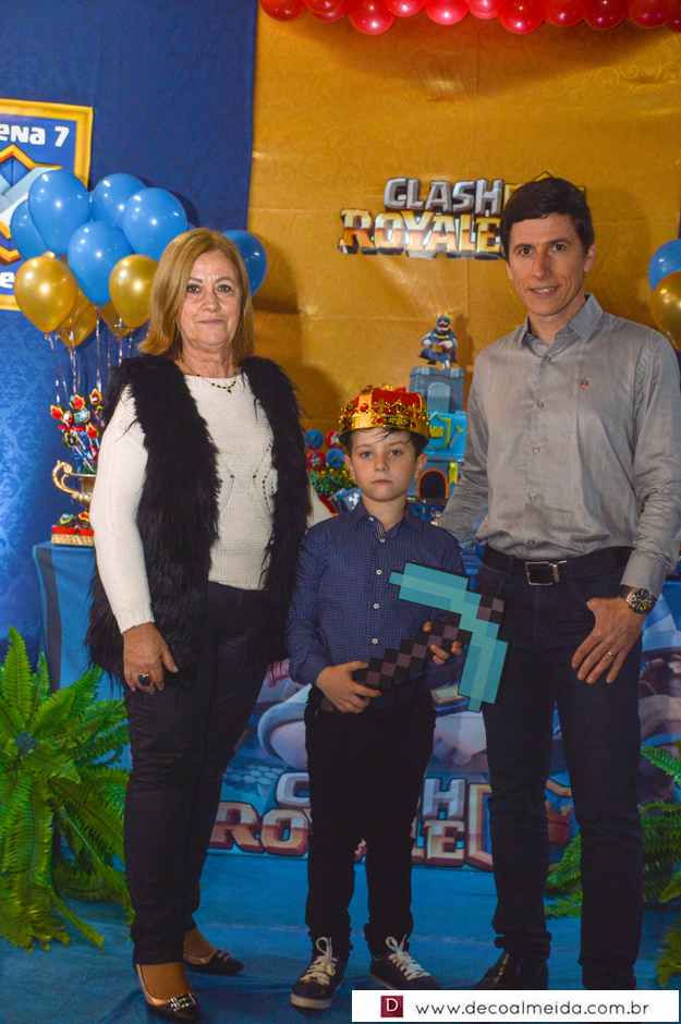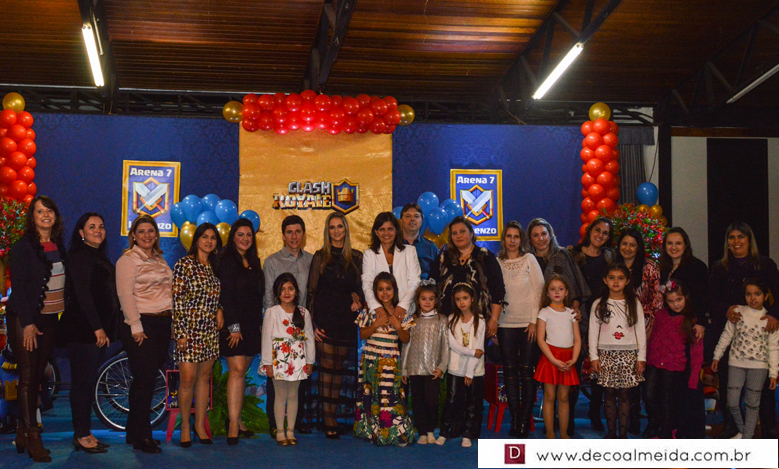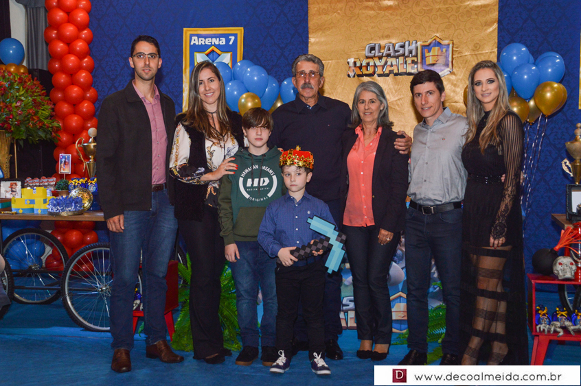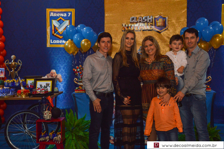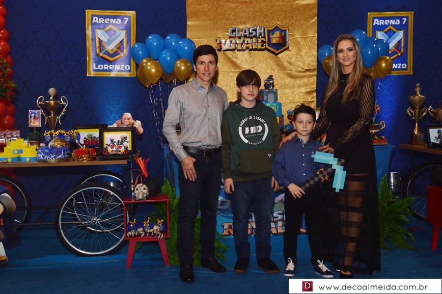 Marcelo da Costa e Zilma Issler estavam alinhadíssimos no sábado, recebendo em torno de Lorenzo, que comemorava a chegada dos sete anos de idade. Tudo armado e inspirado em tema atual e diferenciado como tem sido as festas do clã. O Clash Royale pairou no ar com décor realçando as cores azul, vermelho e dourado, criando uma atmosfera festiva no Restaurante do Parque de Exposições. Realce as finíssimas peças da SIM emoldurando o ambiente, assim como o perfeito cardápio e doces da Sonho de Festa.