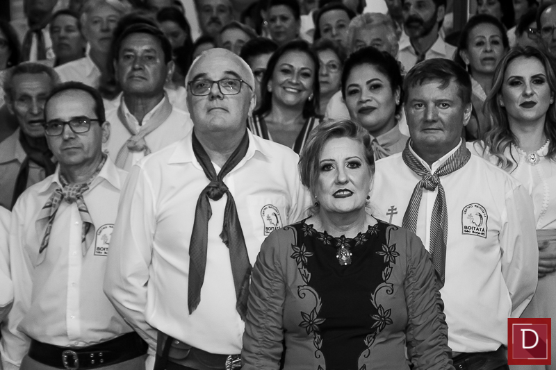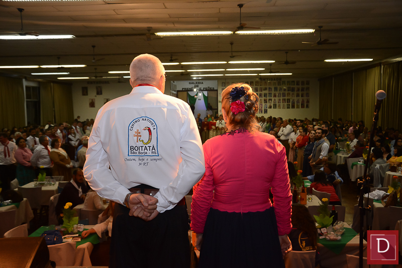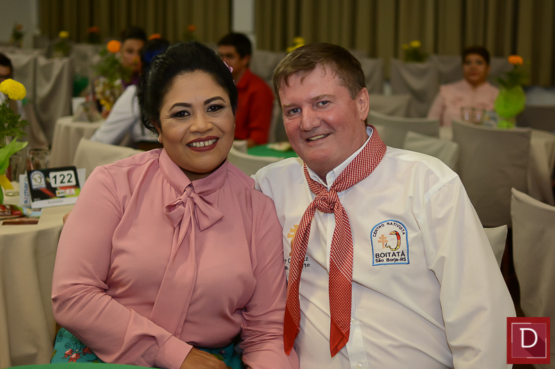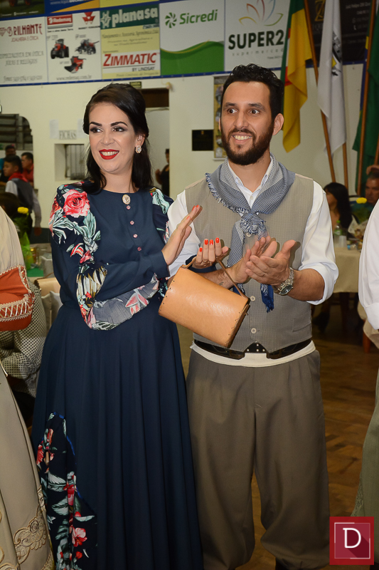 Gelci, como sempre, uma prenda das mais fulgurantes com o patrão Flávio Ceolin, foram irretocáveis anfitriões dessa baita noite fandangueira, que contou com apresentação de invernadas artísticas e casa cheia.