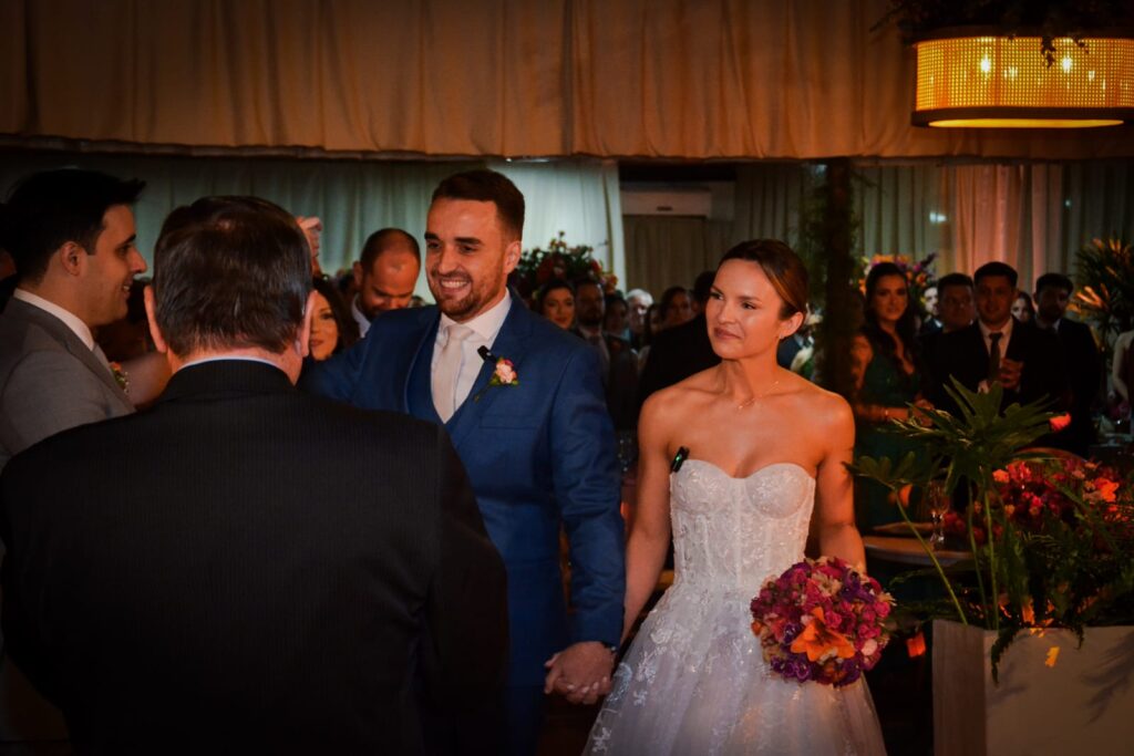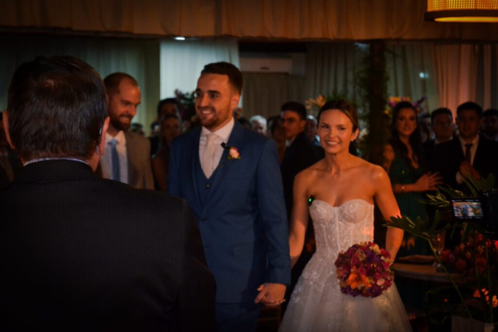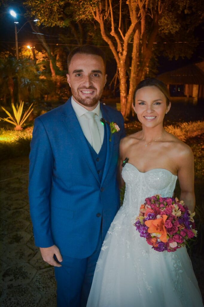Ao som de Ave Maria, numa tarde ensolarada com nuances de primavera que Mariana subiu ao altar da Igreja Matriz São Francisco de Borja para a troca de alianças com Johann, protagonizando um acontecimento pontuado pela elegância na presente temporada. A noiva vestindo uma concepção de Jane Sefrin, estava num sonho de modelito delicado com encanto e estilo do romântico atemporal. Com uma estrutura com sobreposição de rendas chantilly e renda floral bordada, ganhando textura e delicadeza que realçou a graça de Mariana. Tudo perfeito e irretocável, como a recepção oferecida por seus pais Zani Terezinha e Francisco Carlos Dias Tatsch, Denise Moreno Coelho e Sergio Antonio Kunrath que estavam alinhadíssimos, recebendo cumprimentos no salão de festas do Parque Serafim Vargas, em uma festa sofisticada, em atmosfera das mais charmosas num decor com profusão de flores e um emocionante cerimonial seguindo por Mariana e Johann elaborado pela esplêndida Zilma Isller e a Sonho de Festas, que cuidaram dos mínimos detalhes para o sucesso do evento que teve animação musical até clarear o dia de domingo.