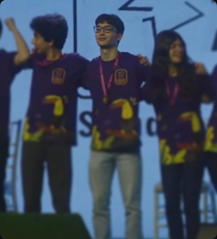 Adriana e Silvio Amaral, felicíssimos com o filho, o estudante Alexandre de Abreu Amaral, aluno do CESB, que ganhou pelo quarto ano consecutivo a medalha de ouro das Olimpíadas Brasileiras de Matemática das Escolas Públicas (OBMEP), sendo que desta vez obteve o primeiro lugar no Brasil, com vaga garantida no Instituto de Matemática Pura e Aplicada, no Rio de Janeiro. Uma glória, indiscutivelmente.