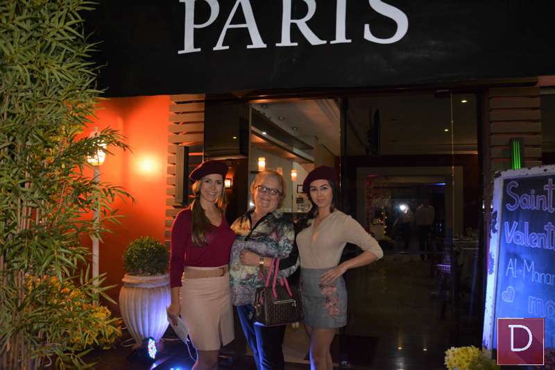Noite de muita originalidade, bom gosto e criatividade selou no Restaurante Al-Manara uma noite em Paris. Inspirado no romantismo da cidade luz, as gurias ofereceram aos namorados uma noite repleta de paixão, entretenimento e união. Tudo perfeito do cardápio à decoração, sob o olhar de Tatiane e Marianne Alawi Barchet.
