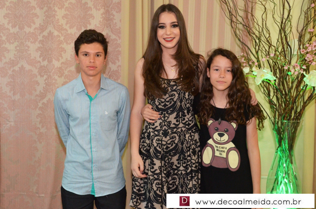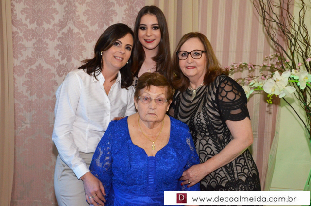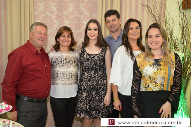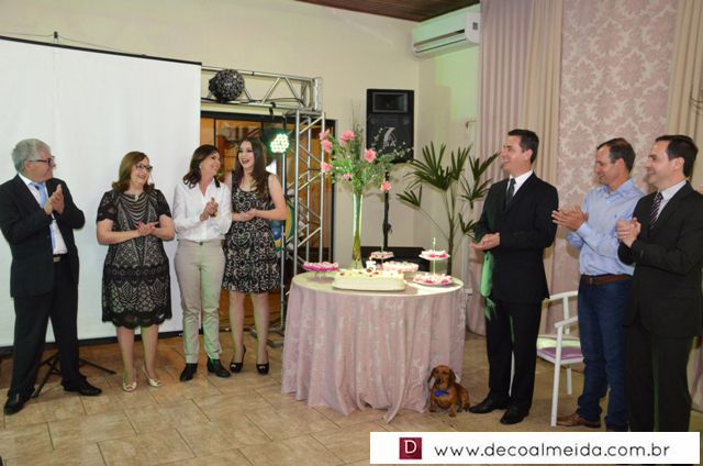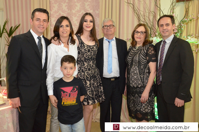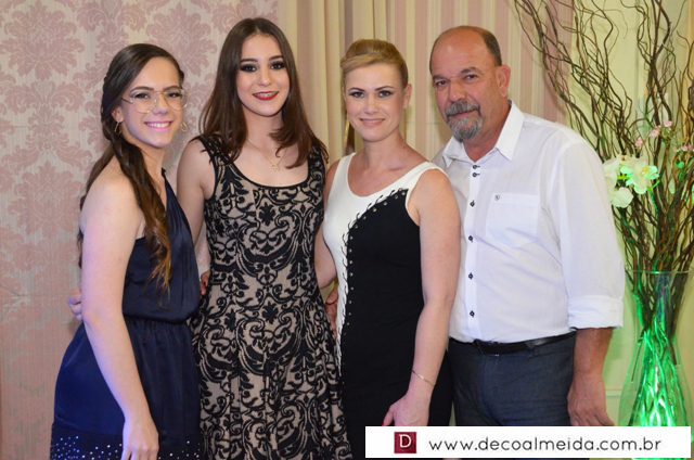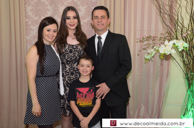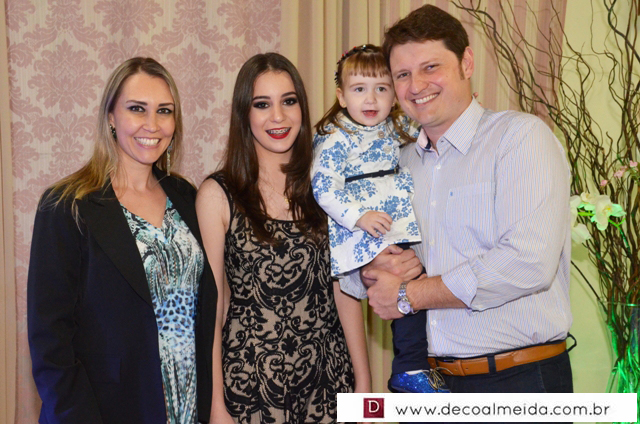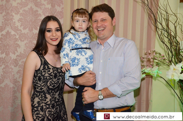 Com muita graça e charme recebeu cumprimentos acompanhados dos pais Rogério Ponsi e Juliana Cabral, em ambiente devidamente decorado para a ocasião com um toque de embelezamento assinado por Sônia Decorações transformando o Cluvimil em um cenário especial e como cerimonial de Ivaniza Bonetti.